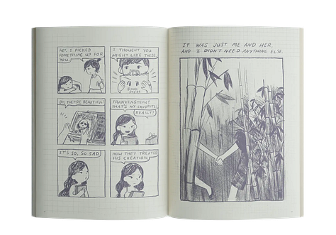 And though Mai is best known contemporarily for brash and satirical comics about herself, Soft isn't strictly speaking about her. Mai retells Sheridan Le Fanu's Carmilla, a lesbian vampire story that predates Dracula by a quarter century. And Laura's best friend Jun-Mei means she gets to be in it anyway. But making Soft about Laura and not June made it so the story was no longer bound to the truth of See You Next Tuesday, Mai's comics confessions, and popular persona. Vampires! Not true! But the feelings are true. They're more real than anything in the book. The moments when the read gets undeniably real and heartbreakingly true are when Jane speaks to you without having to be present on the page.